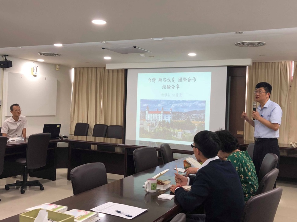 感謝本校化學系許員豪副教授於107年10月24日前來理學院與同仁進行關於「台灣-斯洛伐克國際合作計畫申請經驗分享」之演講。該日,本院與會同仁包含化學系張柏齡主任、龍鳳娣教授、楊振宜副教授、張源杰副教授、王迪彥助理教授、生科系汪碧涵主任、謝明麗特聘教授、學生劉人丞以及應數系沈淵源教授等人。會中許老師於「人、事、時、地、物」各方面皆有詳盡之分享,人的部分,挑選適合的合作對象、與欲合作對象進行良好的溝通及討論、考量合作團隊特性及核心技術;事(研究計畫)的部分,訂定共同研究主題、制定雙方可接受之研究進度、合作研究之必要性;時間的部分,於計畫申請前、計畫核定前、計畫執行期間等,各階段該注意的事項;地點的部分,簡單以地理位置說明同仁可主攻申請合作之國家、歷史淵源等;物的部分,藉由人員互訪之經驗,比較兩地生活水平、物價、生活環境等多方資訊。